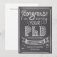 Este producto es una tarjeta de felicitación o saludo para un graduado de doctorado exitoso. Es un regalo agradable de familiares, amigos y colegas en la defensa del doctorado. Este diseño único presenta una pizarra con el texto "Felicidades por obtener su doctorado" y un texto personalizable.