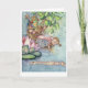 tarjeta de felicitación con un príncipe rana tocando un laúd y una hada en un bote romántico