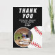 Tarjeta de agradecimiento de béisbol para entrenador con una foto en marco ovalado, nombre del entrenador, nombre del equipo, año y nombre del jugador. Tarjeta de agradecimiento personalizada con foto - agregue su foto al template. ¡Gran tarjeta de agradecimiento para el entrenador del equipo de béisbol!