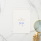 Esta tarjeta de gabinete de detalles bodas de dos caras presenta una hermosa cinta de color azul polvoriento, fuente contemporánea en un cálido color dorado, con un fondo blanco roto, tanto en la parte trasera como en la parte delantera.