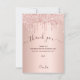 Un fondo dorado rosa decorado con falsas gotas de purpurina que dan un efecto de goteo de pintura. Texto grande a mano con florituras que dice: Gracias. Personaliza con tu nota de agradecimiento y nombre.