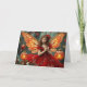 Tarjeta de saludos festivos. Esta tarjeta de arte de hadas festivas es la manera perfecta de mostrar su amor único por las hadas con esta impresionante y única carta de saludos que trae alegría en cualquier momento. Hermosa tarjeta Vintage con un hada con un vestido rojo brillante con azulejos de cristal de bonito colgados de los árboles. Una hermosa escena de Navidades. En blanco para tu propio mensaje.