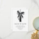 Tarjeta de inserción de fecha de graduación con un hermoso lazo negro pintado y borla.