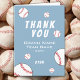 Gracias, entrenador Blue Baseball Player Card. Simple béisbol gracias tarjeta de entrenador con texto de agradecimiento, nombre del entrenador, nombre del equipo, año, nombre y pelotas de béisbol. Personaliza la tarjeta con nombres y tu texto dentro de las tarjetas. ¡Excelente tarjeta de agradecimiento para el entrenador del equipo de béisbol!