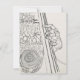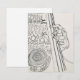 Una carta que muestra un boceto de tinta de una mano tocando un bajo erguido, con palabras en el fondo que dicen "Mujer Brasa" y "Mujer Jefe".
