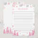 Esta tarjeta de la cápsula del cumpleaños del copo de nieve rosa es un bizcocho diseñado para celebrar un cumpleaños especial mientras se crean recuerdos duraderos. Esta tarjeta tiene un encantador motivo de pino rosa adornado con delicados copos de nieve, que evocan el tema del maravilloso paisaje invernal. La tarjeta incluye espacio para que amigos y familiares escriban mensajes sentidos, compartan recuerdos preciados y ofrezcan deseos para el futuro. Perfecto para cumpleaños de todas las edades, esta carta es una manera cuidadosa de crear y preservar recuerdos en los años venideros.