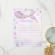 Haz recuerdos duraderos con nuestra tarjeta de mensaje de la cápsula del cumpleaños de la Sirena! Con una brillante cola de sirena rosa, adorables criaturas marinas y ondulantes tonos pastel, estas tarjetas invitan a los invitados a escribir mensajes especiales, deseos o predicciones para que su pequeña niña aprecie en el futuro. ¡Un recuerdo mágico de su celebración submarina que valorará en los años venideros!