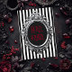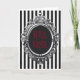 Tarjeta de Navidad de Salve Santa. © Dark Heart Desires. Esta Tarjeta de Navidad Gótica tiene rayas negras y blancas con un marco plateado blanco en el centro y dentro del marco las palabras Salve Santa en rojo intenso. La tarjeta está en blanco por dentro para que puedas escribir tu propio mensaje.