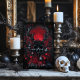 Tarjeta de Navidad Merry Hexmas. © Dark Heart Desires. Esta Tarjeta de Navidad Merry Hexmas tiene una calavera de reno y cuernos con decoraciones alrededor. Esta tarjeta está en blanco por dentro para que puedas agregar tu propio mensaje de Navidad.