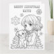 Tarjeta de Navidades de gran tamaño. Un color lindo me Navidades tarjeta con un pequeño chica de anime sosteniendo un cachorro rodeado de copos de nieve. El nombre se puede personalizar.
