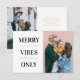Desearía a todos que conozcas unas vacaciones muy felices con esta encantadora tarjeta de fotos MERRY VIBES. Edite fácilmente las fotos (delante y atrás), nombre y mensaje en la parte de atrás.