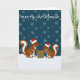 Una tarjeta de Navidades adorable con dos ardillas intercambiando un regalo.
