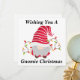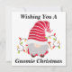 Carta con la tarjeta "Te deseo un Navidad Gnomie". Santa gnome lindo con luces Navidades en el fondo. Una hermosa adición a su colección de Navidades Gnome este año.