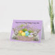 Tarjeta de Pascua y Cumpleaños para un niño o chica de 6 años. La carta es de color morado, con una cesta de Pascua con huevos y flores, además de dos conejitas a los lados de la cesta. También he incluido un problema para resolver que es fácil para un niño de 6 años. Gracias a los recortes de diseño y a la tela creativa por algunos de los elementos del diseño. Se pueden cambiar todas las palabras de la tarjeta.
