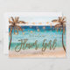 Agradecimiento tarjeta de propuesta de niña de flores en la playa