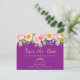 Esta simple pero elegante tarjeta de Guardar la Fecha combina delicadamente los elementos de la primavera con un encanto de color profundo y audaz. ¡Haga que sus invitados respondan con este hermoso diseño! También están disponibles artículos coincidentes en nuestra tienda.