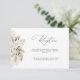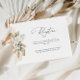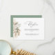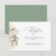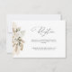 Una moderna tarjeta de recepción de bodas con escritura negra y pampas color agua y temática verde sabio.