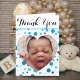 Comparte tu alegría y di un agradecimiento especial con este lindo punto Poka azul y blanco, tarjeta de foto personalizada para tu asombrosa doula o partera. Presenta tu foto favorita de tu recién nacido para crear un recuerdo verdaderamente personal y sincero. Este diseño moderno es la manera perfecta de mostrar su gratitud por su inquebrantable apoyo durante su viaje al nacimiento. Añada fácilmente el nombre de su bebé, la información de nacimiento y un mensaje del personalizado. Esta tarjeta es un placer maravilloso y es la adición perfecta a cualquier regalo de doula o regalo de agradecimiento a la comadrona.