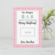 Esta preciosa tarjeta de Navidades de profesores presenta una divertida manta rosa color agua con árboles navideños pastel y acuarelas. Dice "Gracias por ayudarme a crecer. ¡Feliz Navidad!" También hay un espacio para dejar una tarjeta de regalo. Personalice con el nombre de su hijo y el del profesor.