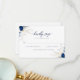 Presentamos nuestra tarjeta de respuesta de boda con caligrafía azul horizonte elegante, donde los tonos acuarela sofisticados de azul oscuro y azul horizonte se unen con delicadas flores blancas y fuentes de caligrafía elegantes. Esta tarjeta de respuesta impresionante irradia elegancia atemporal, estableciendo el tono perfecto para una boda clásica y lujosa. Con sus detalles exquisitos y colores armoniosos, promete hacer que tu día especial sea verdaderamente inolvidable.
