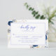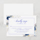 Haz una declaración refinada con nuestra tarjeta de respuesta de boda con caligrafía azul horizonte elegante. Con una caligrafía elegante en un azul horizonte sereno, esta tarjeta encarna la sofisticación y el encanto moderno. Es el complemento perfecto para el tema de tu boda, combinando la elegancia con un toque de estilo contemporáneo para asegurarte de que tus respuestas sean elegantes y sin esfuerzo.