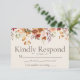Tarjeta de respuesta de boda floral de follaje de otoño moderno en marfil para sus invitaciones de boda, utilizada como tarjeta de inclusión.