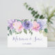 Tarjeta de respuesta de código QR de invitación de boda floral de acuarela rosa púrpura RSVP tarjeta de respuesta adjunta.