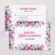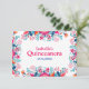 Asegure que sus invitados respondan con estilo con nuestra Tarjeta de RSVP Floral Quinceanera Fiesta Mexicana. Esta tarjeta elegante presenta un fondo blanco prístino adornado con patrones florales vibrantes en turquesa, naranja y rosa, que complementan perfectamente la tipografía rosa caliente y azul real. Diseñada para capturar el espíritu festivo de una Quinceañera, esta tarjeta de RSVP proporciona una forma hermosa y práctica para que los invitados confirmen su asistencia. Elaborada con materiales de alta calidad, ofrece tanto atractivo visual como durabilidad. Agregue un toque de sofisticación a la planificación de su evento con la Tarjeta de RSVP Floral Quinceanera Fiesta Mexicana.