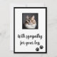 Una simple tarjeta de condolencia puede significar el mundo para alguien que llora la pérdida de su amado mascota. Diseñado para que pueda ser descargado o impreso, puede conservar la tarjeta tal como está o intercambiar la foto por su cuenta. Enviar como está, sin una redacción adicional, está bien. La parte de atrás está deliberadamente en blanco para que puedas escribir tu propio mensaje personal, si lo deseas. Se puede compartir la memoria favorita del mascota - los propietarios de mascotas encuentran esto muy reconfortante. A menudo se pasa por alto la pérdida de un mascota y el suficiente cuidado como para enviar una simple tarjeta muestra mucha empatía y cuidado.