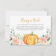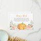 El diseño presenta una calabaza naranja con flores rosadas y naranjas. Es perfecto para un baby shower con tema de otoño.
