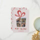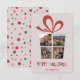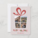 Collage festivo de fotos brillantes tarjeta de vacaciones con forma de caja de regalo que tiene una sala para cuatro fotos y se puede personalizar agregando tus nombres o texto personalizado. Esta plantilla de tarjeta es especialmente buena para Navidades y vacaciones de Año Nuevo.