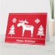 Tarjeta de vacaciones plegada inspirada en Escandinavia. Renos y pinos con decoración navideña. Editable