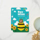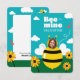 Ilustración adorable de una abeja con margarita, corazón y cielo. Foto personalizable.