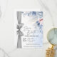 Anuncia tu día especial con elegancia atemporal utilizando esta tarjeta de "Save the Date" de lujo con acuarela, bellamente diseñada con flores suaves en azul y rosa y un acento de cinta plateada chic.