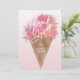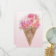 Esta tarjeta plana de agradecimiento incluye un ilustracion acuarela de un helado lleno de flores con un delicado guion que dice "¡Gracias!" y un nombre de personalizable en el cono de gofre. La parte posterior está en blanco con un gradiente rosa claro - perfecto para escribir su mensaje de agradecimiento. Esta tarjeta de agradecimiento combina bien con la ducha de novia con helado de flores y las suites de cumpleaños.