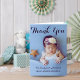 Comparte tu alegría y di un agradecimiento especial con esta linda tarjeta de fotos azul personalizada para tu increíble doula o partera. Presenta tu foto favorita de tu recién nacido para crear un recuerdo verdaderamente personal y sincero. Este diseño moderno es la manera perfecta de mostrar su gratitud por su inquebrantable apoyo durante su viaje al nacimiento. Añada fácilmente el nombre de su bebé, la información de nacimiento y un mensaje del personalizado. Esta tarjeta es un placer maravilloso y es la adición perfecta a cualquier regalo de doula o regalo de agradecimiento a la comadrona.