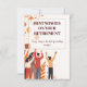 Celebra el retiro de un colega con esta tarjeta de despedida personalizada que presenta un encantador ilustracion de compañeros de trabajo saludando con adiós. El diseño incluye el texto editable "Los mejores deseos en su jubilación", que se puede personalizar con el nombre o mensaje personal del jubilado. Perfecto para despedidas de oficina, celebraciones en el lugar de trabajo y fiestas jubilados, esta tarjeta única combina calidez, humor y estilo profesional para hacer su despido extra especial.