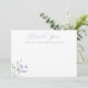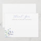 Una bonita tarjeta plana de agradecimiento floral azul claro de la futura Sra. después de un desayuno nupcial.