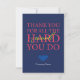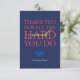 Reconocer el trabajo duro y la dedicación de su empleado con este diseño tipográfico único que presenta el mensaje: "Gracias por todo el trabajo duro que haces". En la parte delantera, 'Nombre de la empresa' es un texto de marcador de posición y debe ser personalizado. La parte posterior de la tarjeta puede ser personalizada con un mensaje de su elección según la ocasión. He colocado un soporte de texto allí. Esta tarjeta podría ser exacta para un deseo de cumpleaños o aniversario para un empleado en el Día del Trabajo, celebrando un día especial, o un logro del empleado/personal.