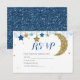 Tarjeta RSVP Baby Shower de la luna de oro azul de la marina