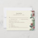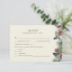 RSVP con elegancia con nuestra cautivadora tarjeta RSVP de Boda de Invierno. Diseñada como el complemento perfecto para nuestra encantadora colección de invitaciones a bodas, esta tarjeta RSVP permite a sus estimados invitados responder no sólo a su asistencia sino también a seleccionar sus opciones de menú e indicar cualquier preferencia dietética. La parte delantera de la tarjeta muestra un elegante arreglo tipo guirnalda de ramas de pino, pinecones y bayas huecas, que capturan la belleza intemporal de los elementos naturales del invierno. El diseño intrincado marca la pauta para la celebración temática del invierno, infundiéndola con la magia de un maravilloso país invernal. Al dar la vuelta a la página, los nombres y la dirección se encuentran en un cordón de encantadores tendrils florales y viñedos, lo que crea un espacio para que los huéspedes puedan aprovechar su RSVP, sus opciones de menú y sus necesidades dietéticas. El diseño elegante y el formato claro garantizan que el proceso de respuesta sea fácil y agradable para sus apreciados huéspedes. Las tarjetas RSVP, impresas en material de cartón de alta calidad, reflejan la misma atención al detalle y la artesanía artística que el resto de nuestra colección de bodas. Mientras usted y su amada se embarcan en este hermoso viaje de amor, deje que esta tarjeta RSVP prepare el escenario para una experiencia de boda de invierno verdaderamente inolvidable y refinada. Personalice estas tarjetas RSVP para reflejar su estilo y preferencias únicas, haciendo que sus huéspedes estén aún más emocionados de responder a una invitación tan encantadora y reflexiva. Con la tarjeta RSVP de Boda de Invierno, cada aspecto de su boda irradia la alegría y la magia de su día especial. Solicite hoy mismo sus tarjetas RSVP de Boda de Invierno y asegúrese de que las respuestas de sus invitados añaden encanto y celebración a su extraordinaria boda de invierno.