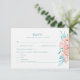 Agradecimiento Tarjeta RSVP de Boda Floral de Peach y Turquesa