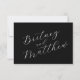 Sencillo guión minimalista elegante en tarjeta RSVP de boda blanca y negra.
