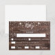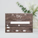 Tarjeta RSVP rústica con fondo de efecto de madera. Fuente blanca y espacios en blanco para completar los detalles del invitado. Incluye la elección de las comidas.