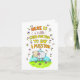 El fondo de esta tarjeta es blanco. De arriba hacia abajo está escrito "Acá hay una pequeña carta para que digas que te extraño". Las letras son dibujadas a mano, amarillas y naranjas. Las palabras están enmarcadas con pequeñas flores rosadas y violetas. Debajo de ellos está el dibujo de una linda oveja, dibujada al estilo personalizado. Tiene una flor rosa en la boca y sonríe al espectador. Está situado en un campo de hierba verde con flores rosadas. Detrás de la oveja, se ve un cielo azul