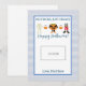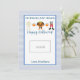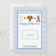 Esta tarjeta de profesor de Halloween presenta un fondo de manteca azul y blanca con acentos naranjas y dice "No hay trucos, solamente trata. ¡Feliz Halloween!" y un lindo trío de acuarela de trajes de halloween. También hay un espacio para dejar una tarjeta de regalo. Personalice con el nombre de su hijo.