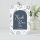 Esta tarjeta de agradecimiento Navy Blue This All I Sea is Love muestra un audaz fondo costero decorado con caprichosos dibujos de conchas marinas, estrellas de mar, corazones, destellos e ilustraciones inspiradas en el océano en azul marino para un elegante ambiente de aguas profundas. En el centro hay un arco azul oscuro rico con un delgado contorno blanco interior, que presenta la frase "Gracias" en la parte superior, una ilustración de concha marina debajo y un espacio personalizable para agregar el nombre de la novia. El reverso está en blanco, dejando espacio para tu mensaje manuscrito y sincero. Todos los elementos y colores del diseño son editables para que puedas adaptar la tarjeta a tu celebración.