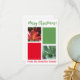 ¡Esta tarjeta es perfecta para desear a alguien una feliz Navidad! Tiene un toque floral rojo y verde y está hecho con amor. Esta tarjeta en particular es personalizable si desea sustituir el apellido por el suyo y así puede añadir imágenes a colocar en los rectángulos rojo y verde. Está en blanco al revés e incluye un sobre.