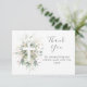 Gracias Tarjeta De Baptismo/Cristalización. Este diseño presenta un ilustracion de follaje verde y dorado de acuarela. En el follaje verde hay una imagen de una cruz.