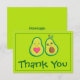 Una tarjeta de "Agradecimiento" verde para bodas o eventos especiales, con adorables aguacates que representan a una pareja. Único, personalice hoy. Aguacate por Prettygrafik Design (https://www.etsy.com/shop/Prettygrafikdesign)